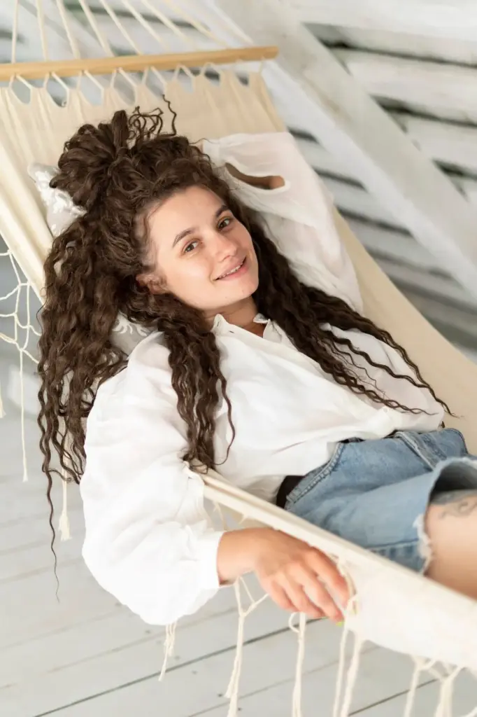 Für welliges Haar genügt eine saubere Grundlinie, sonst wirkt es unruhig. Tagsüber Glättungscreme nur in die Längen, damit der Ansatz lebendig bleibt. Abends die Creme auffrischen, Twist-and-Release-Strähnen formen, Luft trocknen lassen. Die Balance aus Ordnung und Freiheit vermittelt Energie, ohne die berufliche Souveränität zu verlieren. Ein Style mit natürlicher Bewegung und Charme.